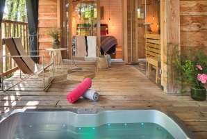 - Une nuit dans la cabane perchée, avec spa et sauna tropical privatifs